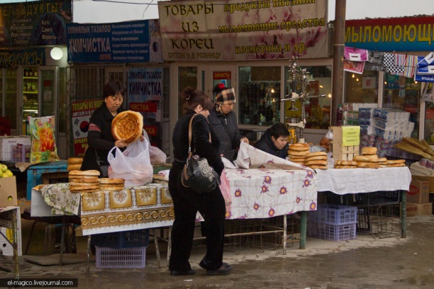 Забегали на местный рынок. Сразу что бросается в глаза, так это наличие лепешек разных видов и мастей.
