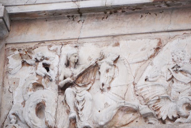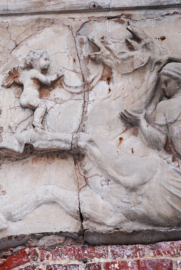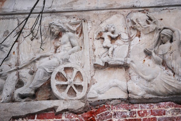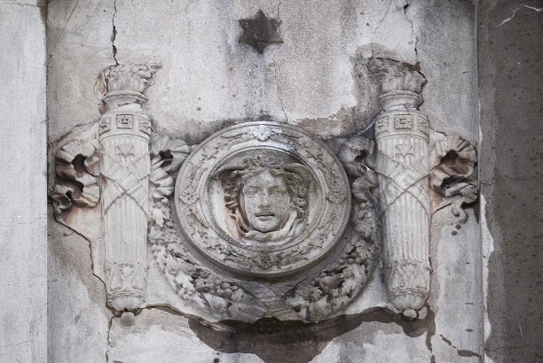 Единственное, что неплохо сохранилось - так это барельефы на фасаде. Возможно, за ними ухаживают масоны...