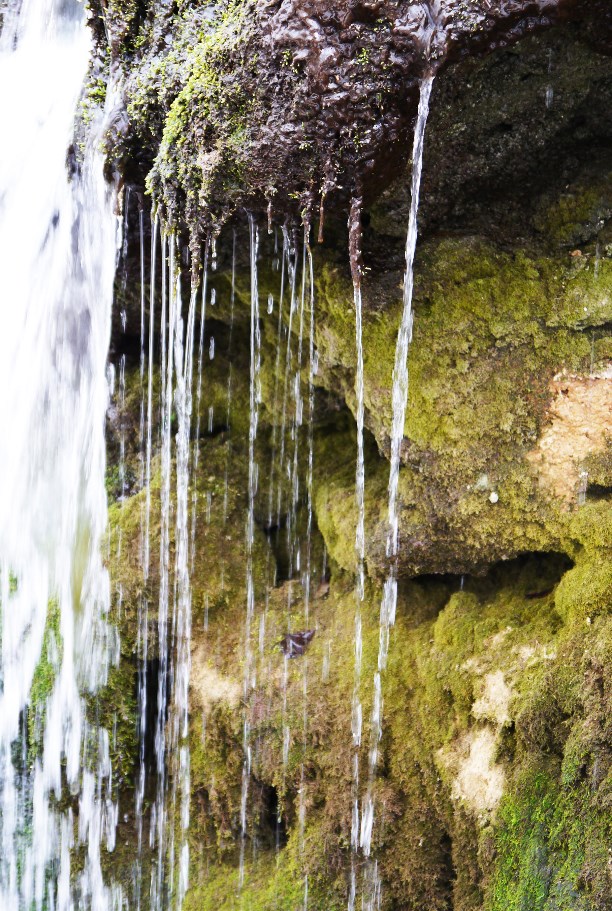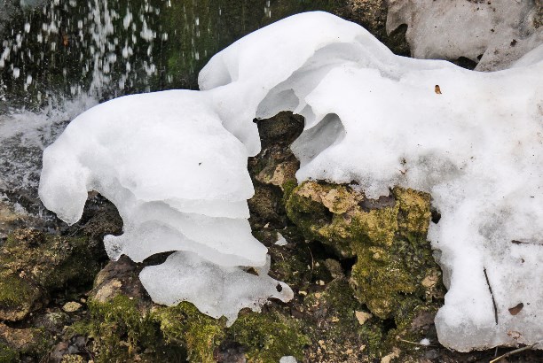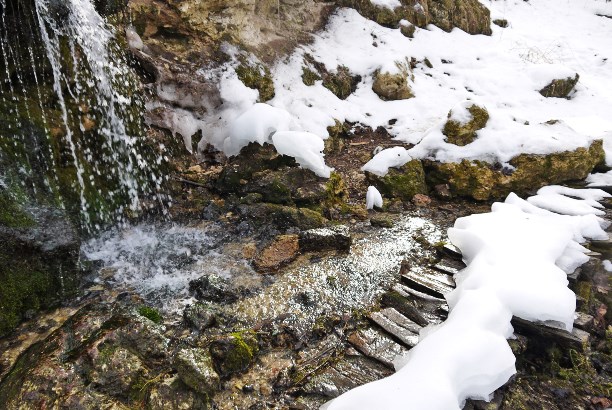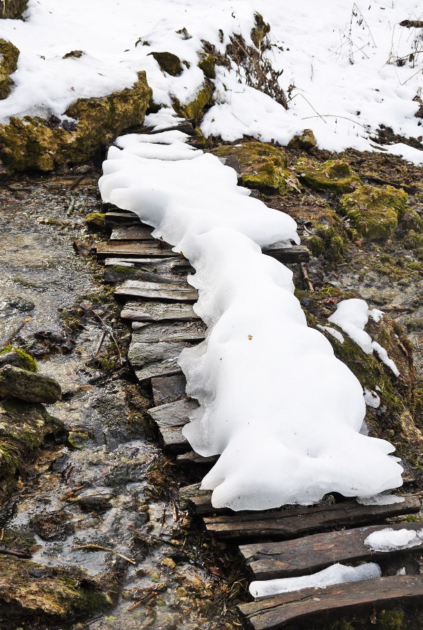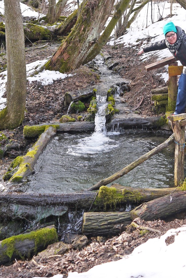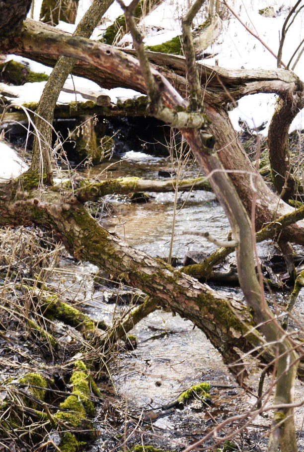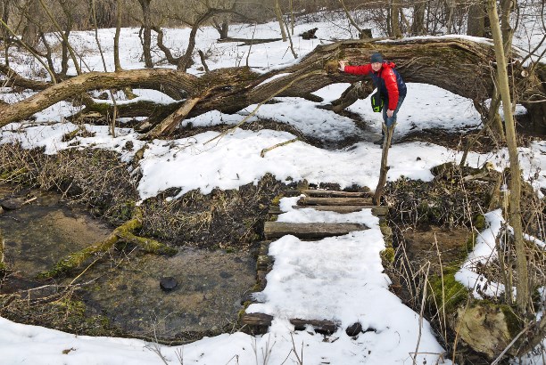 В парке даже водопад есть! Правда, карликовый. В мороз он обычно в кружеве сосулек, весной - в расцвете сил, летом - в травах-муравах, а осенью - в унынии. Мы были в конце февраля и при плюсовой температуре - водопад был скромен :)