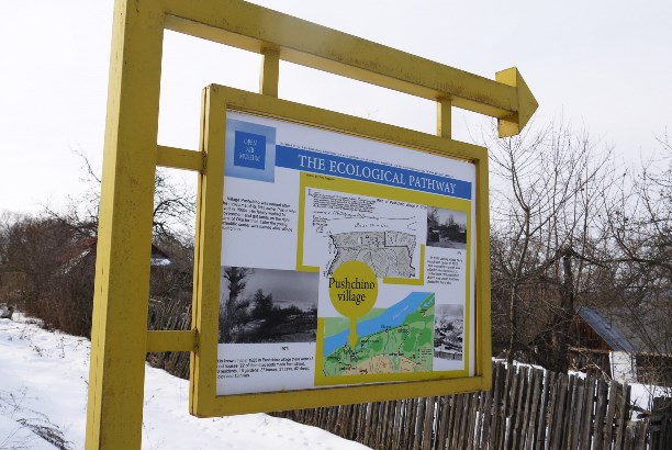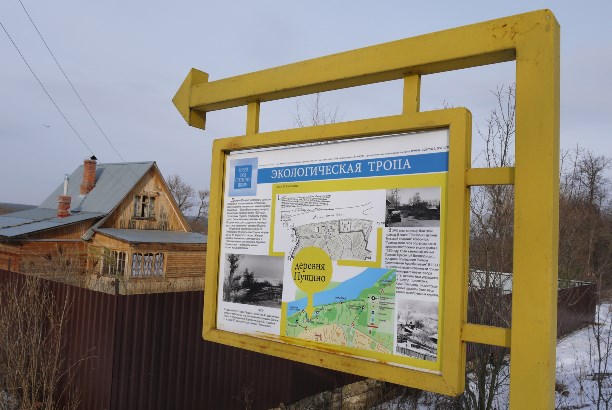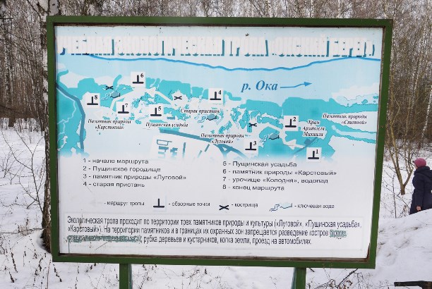 Маршрут начинается от стенда "Окский берег". Оказывается, кроме усадьбы в Пущино множество других достопримечательностей :)