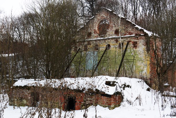 Хозяйственные постройки тоже не жильцы. Каретный сарай и конюшня покоятся в руинах.