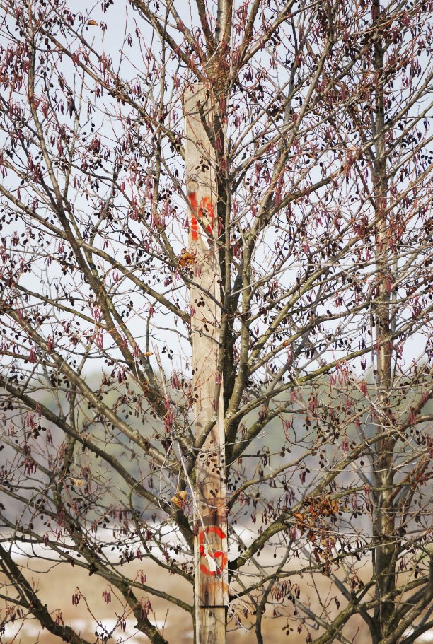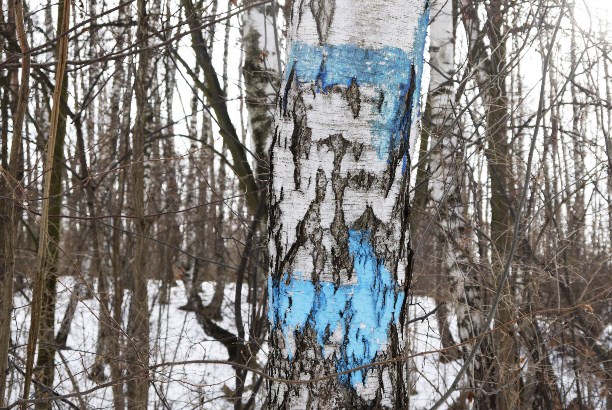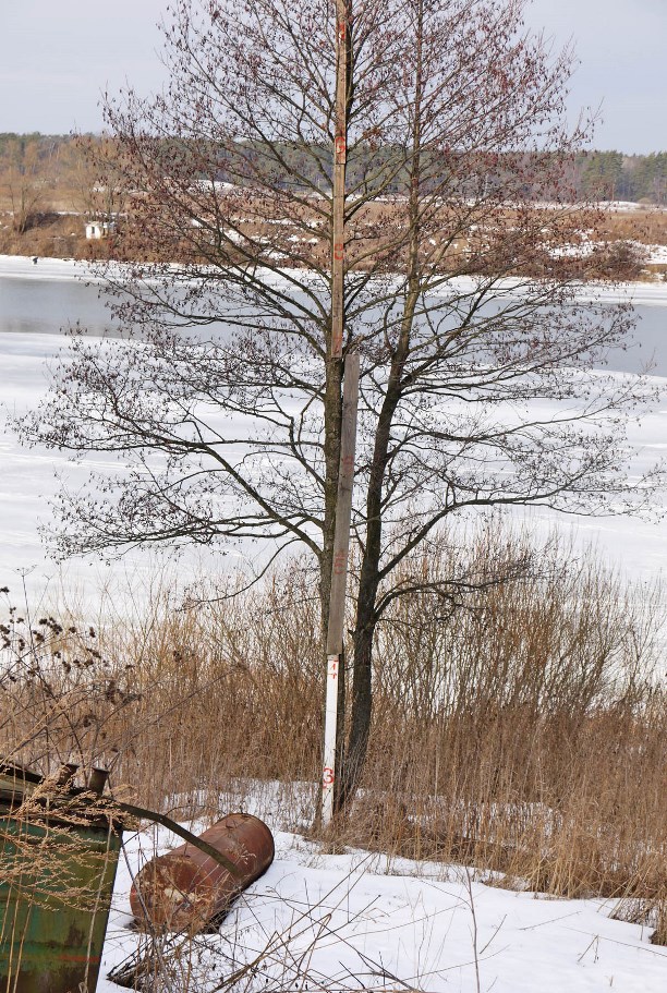 Интересно, что за метки на дереве? В то, что Ока, разливаясь, поднимается на такую высоту - верить отказываюсь. Но потом лезу в интернет за сверхсекретными данными и читаю: "Высота подъема воды у Серпухова достигает 9, а иногда и 12 метров!" С ума сойти.
