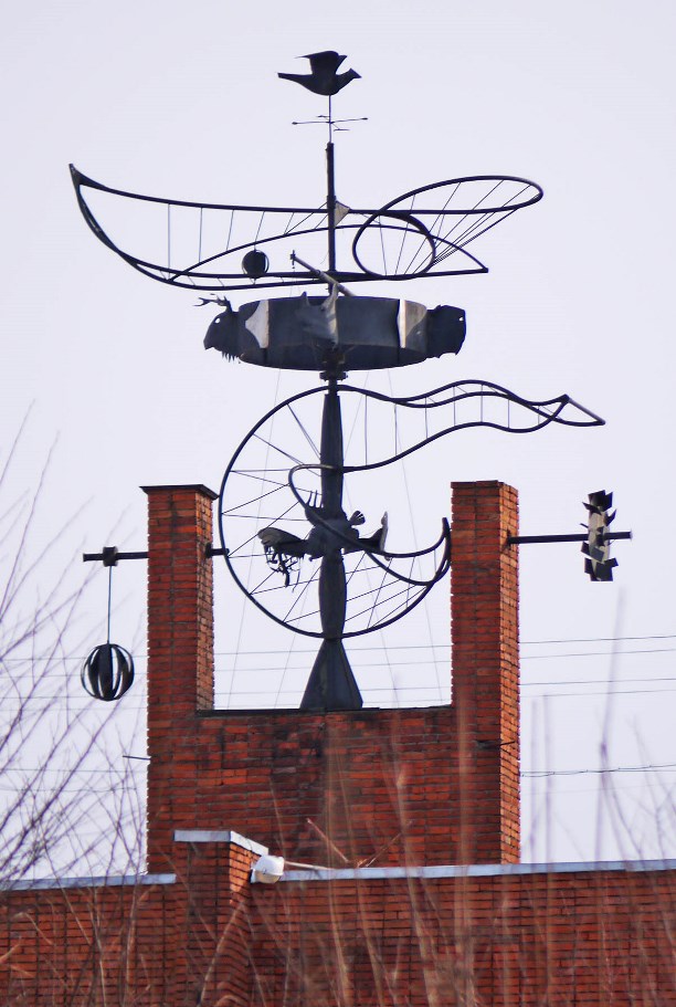В общем нет никаких старых домов и пожилых улиц. Из найденных интересностей - гигантский флюгер на одном из храмов науки. Части света обозначены как лось, носорог, зубр и... А вот с южной стороны на него нам посмотреть не удалось. Если знаете, что там (?) - рассказывайте.