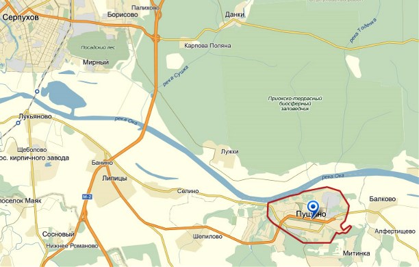 Современный город получил название от деревни Пущино, которая упоминается в писцовых книгах времён Ивана Грозного. Статус города Пущино получило только в 1966 году, а потому архитектурно мало примечательно - дома-коробки, научно-исследовательские институты (их там девять!), торговые центры и обсерватория Российской Академии Науки.