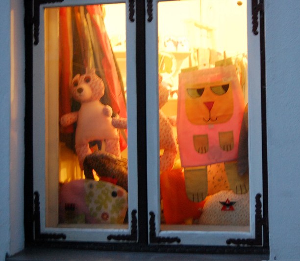 Потом, счастливые и довольные после шнапса, мы догуливали вечер в поисках безделушек друзьям. Лавочки приветливо зазывали открытыми дверями в милые пряничные домики. Высокие окна верхних этажей нависали над мостовыми и грозились затюкать балками, которыми поднимали грузы. И мы так же наблюдали луну, как и вся центральная Россия, только на фоне старого, потёртого города.