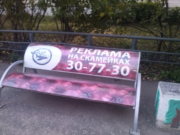 Ну и напоследок чисто марийское ноу-хау – реклама на скамейках (ни в одном городе не видел ни чего подобного):