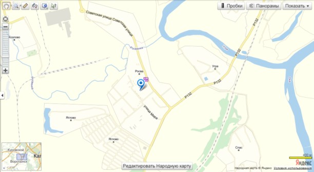 Поселок Росва находится на территории, так называемой, пригородной зоны города Калуги примерно в 15 км от самого города (картинка кликабельна):