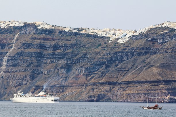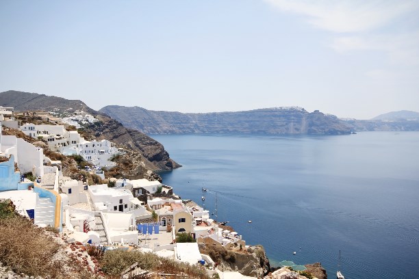 Здесь рай. Рай на потухшем вулкане в Эгейском море. За год здесь бывает более 1 миллиона туристов со всего света. Притом, что численность населения острова не превышает 15 тысяч человек. Вулкан примерно раз в тысячу лет просыпается (не всегда правда) и сбрасывает с себя устаревшие "одеяния".
