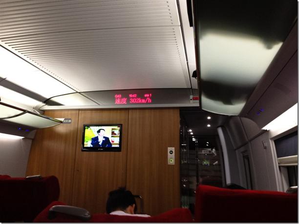Крейсерская скорость у этих поездов составляет 300 км в час, и во время поездки колеблется от 299 до 302. Из Шанхая в аэропорт ходит поезд скорость которого составляет 430 км/ч. Но на нем нам прокатиться не удалось.