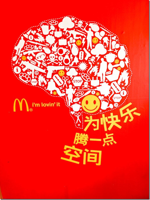 А это, к примеру, принт формата А0, сфотографированный мной в Макдональдсе. Интересно что ни хотели сказать автоматами наручниками и шприцами? Может быть кто-нибудь знает китайский, переведет...