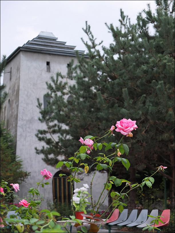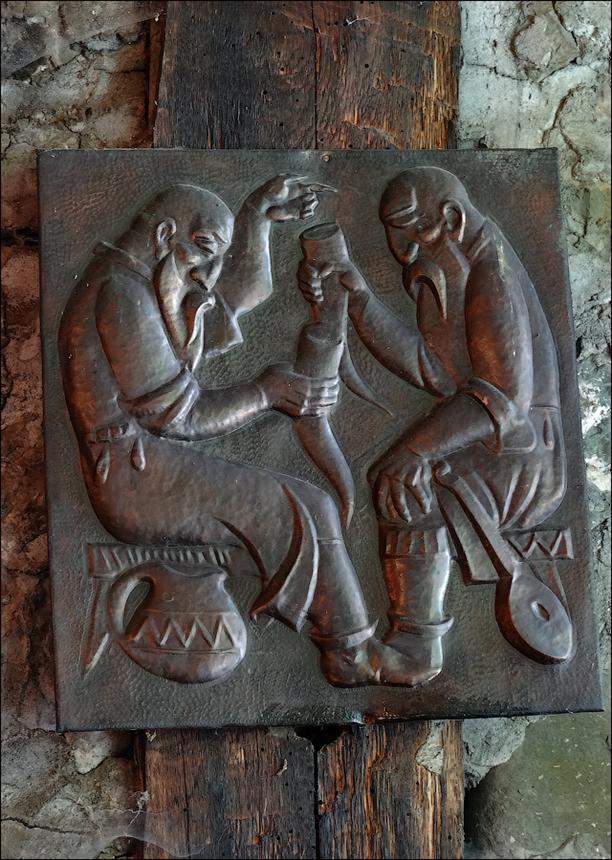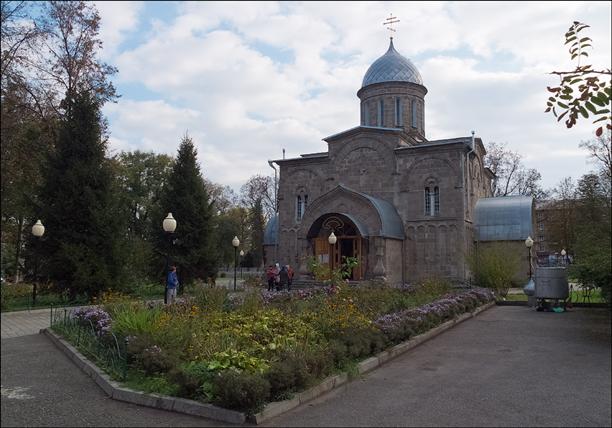 Святилище — это как бы храм, но не совсем. Здесь мы увидели этакий парк с клумбами, по центру которого высится скульптура могучего витязя, поражающего злобного змия, а в глубине парка притаились башни явно ритуального назначения. В одну из них мы заглянули — много иконок и большой стол. Наверное, сюда заходят помолиться перед дальней дорогой, попросить защиты у Святого Георгия — покровителя мужчин, путников и воинов. Но главное в этих башнях — всё-таки стол. Со слов нашего экскурсовода, многолюдно тут только по праздникам — на именины Св.Георгия и на День Победы. Вот для этих-то праздников столы и предназначены. А для обычных будней при святилище есть большой жертвенный чан, куда все проезжающие мимо бросают немного денег, дабы Георгий уберёг их в пути…