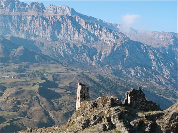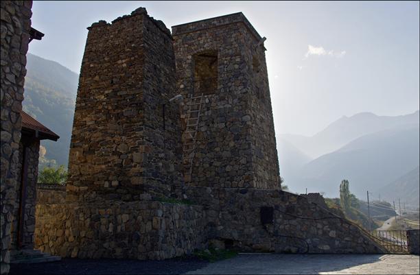 Когда едешь по Осетии, волей-неволей обращаешь внимание на многочисленные родовые башни. До нашего времени сохранилось около трёхсот средневековых башен и замков. Замков, правда, сильно меньше. Около одного из них, миновав Катадурский перевал, мы сделали ещё одну короткую остановку. И опять трудно удержаться от ворчания недовольного фотографа — вместо того, чтобы любоваться фантастическими пейзажами Куртатинского ущелья с невероятно органично «вписанными» в них руинами, все туристы бегом бегут полазать по древним камням, портя своей толчеёй идиллическую картину…