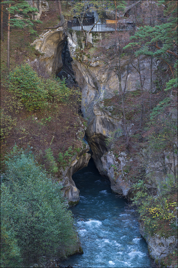Фантастическое на самом деле место. Бесспорно, очень красивое. Но когда начинаешь представлять что тут произошло — даже сейчас, дома, ком в горле. Там дальше, за так называемыми Вратами Кармадона, глубоко внизу находятся (или находились) Кармадонские тоннели. Считается, что именно они приняли на себя основную нагрузку, и именно благодаря им удалось снизить силу и скорость селевого потока. Иначе, вполне вероятно, что смыло бы и Гизель и мост на трассе Алагир — Владикавказ…