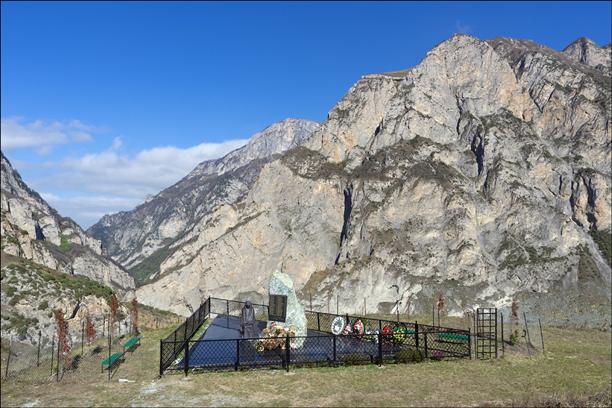 Сейчас, глядя на месиво гигантских камней в глубине ущелья, среди которых теряется красная точка экскаватора, уже невозможно представить, что всего десять лет назад здесь была автострада, ведущая к строящемуся перспективному курорту. На крышах недостроенных корпусов несостоявшегося санатория растут деревья — всё заброшено, и маленькой деревеньке Кармадон в очередной раз не повезло стать шикарным курортом. Единственная дорога, которая теперь ведёт в Кармадон через Катадурский перевал — это серпантинная грунтовка, опасная для жизни после дождя и совершенно непроезжая зимой. Ветхие сакли на холме — ни магазина, ни какого-либо туристического бизнеса. Автобусы заезжают сюда только в солнечные дни. Да и побаиваются, похоже, экскурсоводы местных жителей — даже со скандалом мы не смогли вымолить остановку в верхней точке селения, откуда открывается фантастический вид на Колку… Нам вообще, кроме руин санатория, оказывается, ничего не собирались тут показывать! Но устроенный нами скандал всё же заставил водителя и сопровождающую отвезти нас к мемориальному памятнику на месте лагеря съёмочной группы.