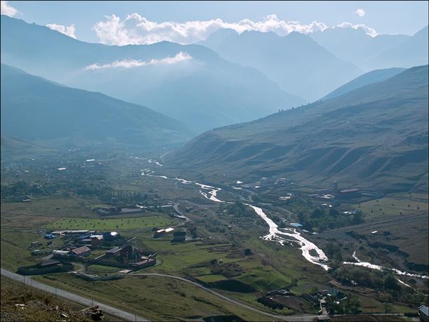Бросив прощальный взгляд на бурный Ардон, проточивший так и не увиденные нами теснины Алагирского ущелья, мы втиснулись в свой автобус и отправились к другой знаменитой осетинской реке — Фиагдон. Северную Осетию, что, впрочем, характерно для Кавказа — часто называют музеем под открытым небом. И создали этот музей четыре горные речки: уже упоминавшийся Ардон; Фиагдон, проточивший живописную Куртатинскую долину; Гизельдон, образовавший богатое уникальными памятниками Даргавское ущелье. И Урух в самом далёком и труднодоступном Дигорском ущелье. Высокогорная Дигория — это самая удалённая юго-западная часть Северной Осетии с дикой и необыкновенно величественной природой. Находится она в стороне от проторенных дорог и доступна только подготовленным туристам и альпинистам. А вот первые три ущелья мы хоть краешком глаза, но увидели…