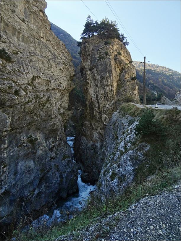 Куртатинское ущелье образовалось в результате прорыва рекой Фиагдон скальных массивов и протянулось вдоль неё более чем на 50 км. В окрестностях Куртатинского ущелья существуют туристические маршруты в Тагардон, где есть доступные для осмотра пещеры. Селения Гусара и Горный Карца славятся красивыми горными склонами с необычными хребтами и гребнями. Но для их осмотра нужен полный световой день, поэтому нам про эти места даже не рассказывали. Как и про Кадаргаван, где оказывается есть что посмотреть и кроме показанной нам теснины. Но, понятно, не в рамках однодневной экскурсии из Минвод. Хорошо, хоть у теснины остановили — место, конечно, живописное, но абсолютно не влезающее в фотографии. По крайней мере, мы так и не сообразили, как его можно достойно показать…