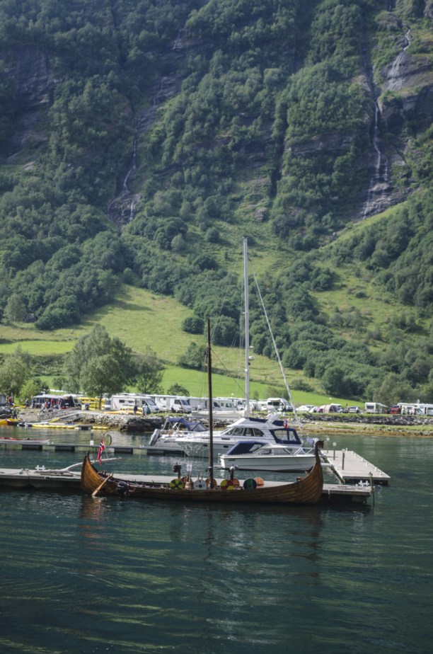 Вот и конец фьорда, где в него вливается река Гейрангелва и находится деревня Гейрангер, от которой он получил свое название. Прямо на берегу расположился авто-кемпинг.