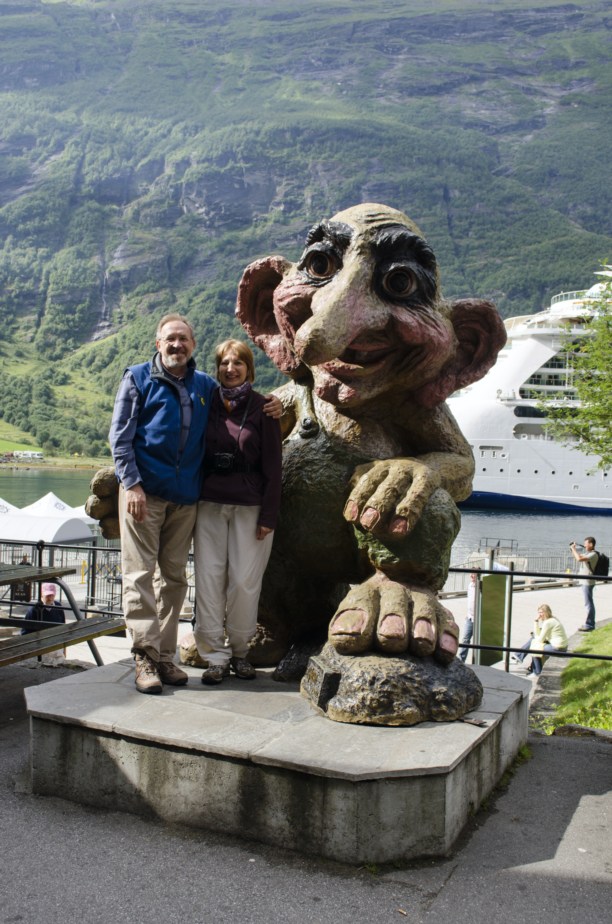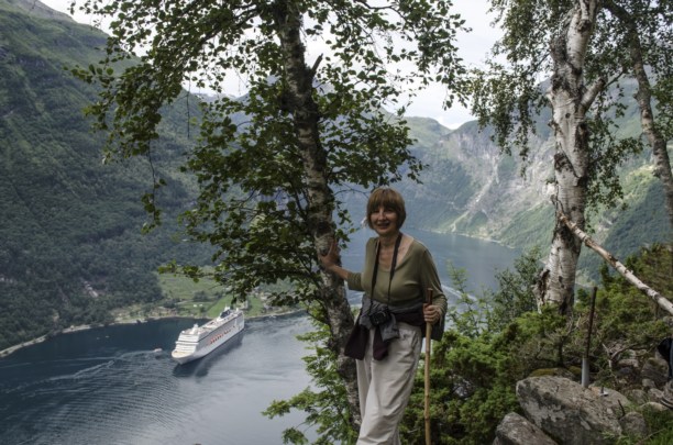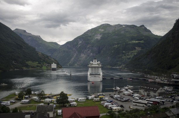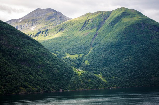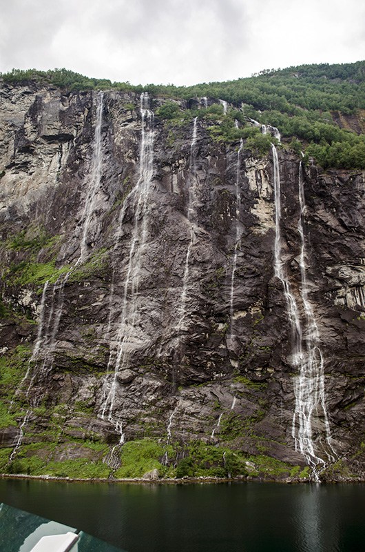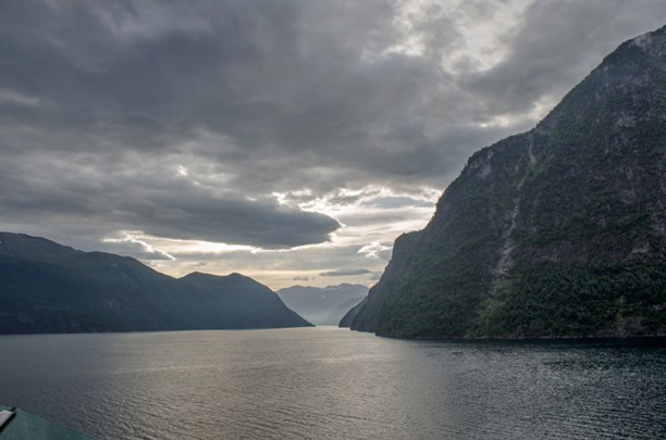На последнем изгибе фьорда, перед самым посёлком Гейрангер, нас приветсвовал луч солнца, наконец-то пробившийся сквозь облака застилавшие небо всё утро.