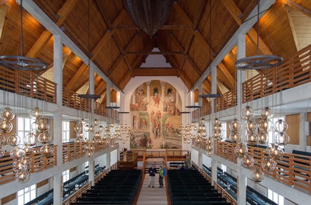 Одной из особенностей этого храма является подвешенная под потолком лодка, символизирующая тесную связь жизни на Фарерских островах с морем.