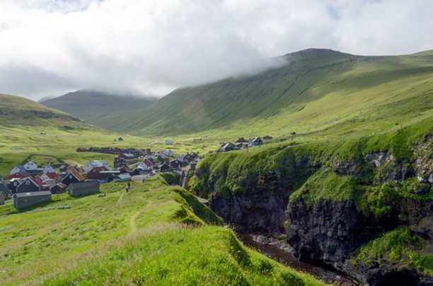 Встречающиеся посёлки выглядят как игрушки. Конечная цель нашего автомобильного путешествия по Фарерам деревня на север-востоке Эстуроя - Gjógv, в переводе на русский означает «ущелье».