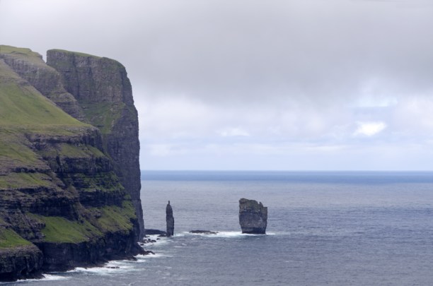 С этими камнями связано множество местных легенд. Одна из них гласит, что Гигант и его жена Ведьма спокойно жили в Исландии. Однажды они возжелали заиметь себе в хозяйстве ещё и Фарерские Острова и отправились за ними по морю. Тонкость их существования заключалась в том, что быть в воде оба могли только по тёмну. Долгая полярная ночь позволяла им совершать достаточно длительные прогулки морем вокруг Исландии. Они благополучно дошли до Фарер, но здесь их поджидала засада. Гигант стоял в море и ждал когда Ведьма залезет за вершину острова и погрузит его ему на плечи (Я честно говоря смутно представляю, как она это собиралась исполнить находясь сама на острове. Но - легенда, есть легенда. А может – тонкости моего перевода). Короче, не справилась она с заданием и наступивший полярный день прихватил их когда они оба были в море. Тут то они и превратились в скалы и стоят застрявшие до сих пор. Существуют и другие версии.
