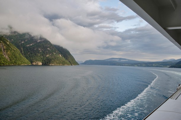 Пенный след за кормой на входе во фьорд.