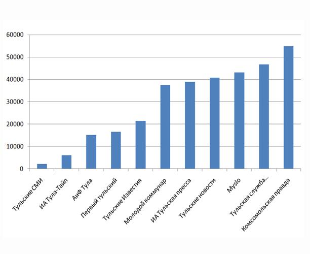 Ну и последнее упражнение (больше утешительное) :)) выбрано по основной специализации сайтов - «Новости». За оценку принималось количество переходов на сайт из самой крупной новостной ленты Рунета – Яндекс.Новости. В основном потому, что все участники в ней представлены и сравнить будет легко.