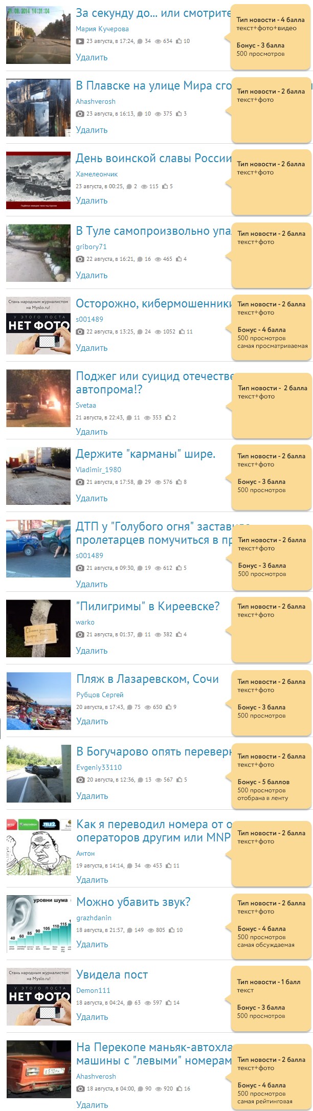 Баллы за новости, вышедшие на неделе: 18 августа - 24 августа