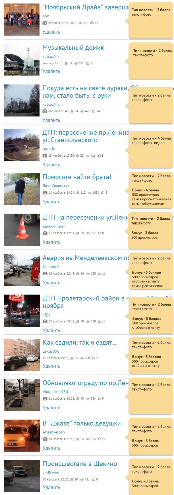 Баллы за новости, вышедшие на неделе: 10 ноября - 16 ноября