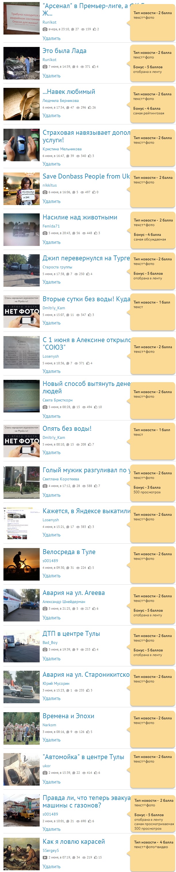 Баллы за новости, вышедшие на неделе: 2 июня - 8 июня
