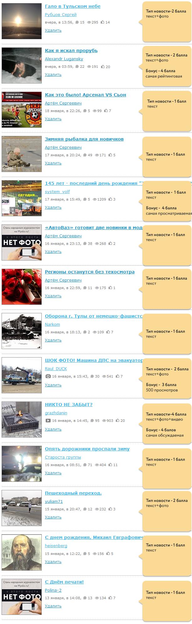 Баллы за новости, вышедшие на неделе: 13 – 19 января