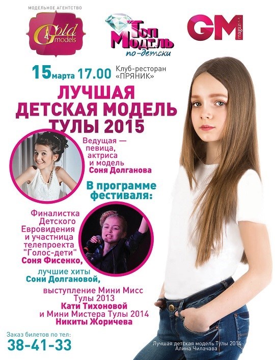 Мы поздравляем Вику с победой и желаем ей достойно себя показать в финале конкурса «Лучшая детская модель Тулы», который пройдет в клубе «Пряник» 15 марта. А во время награждения юная модель получит приятный подарок от Myslo!