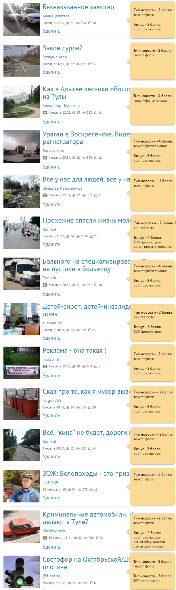 Сергей Рубцов получил дополнительные 5 баллов за новость о памятнике тульскому прянику, которая вошла в прошлый обзор. Эту новость взяли в ленту новостей на прошлой неделе.