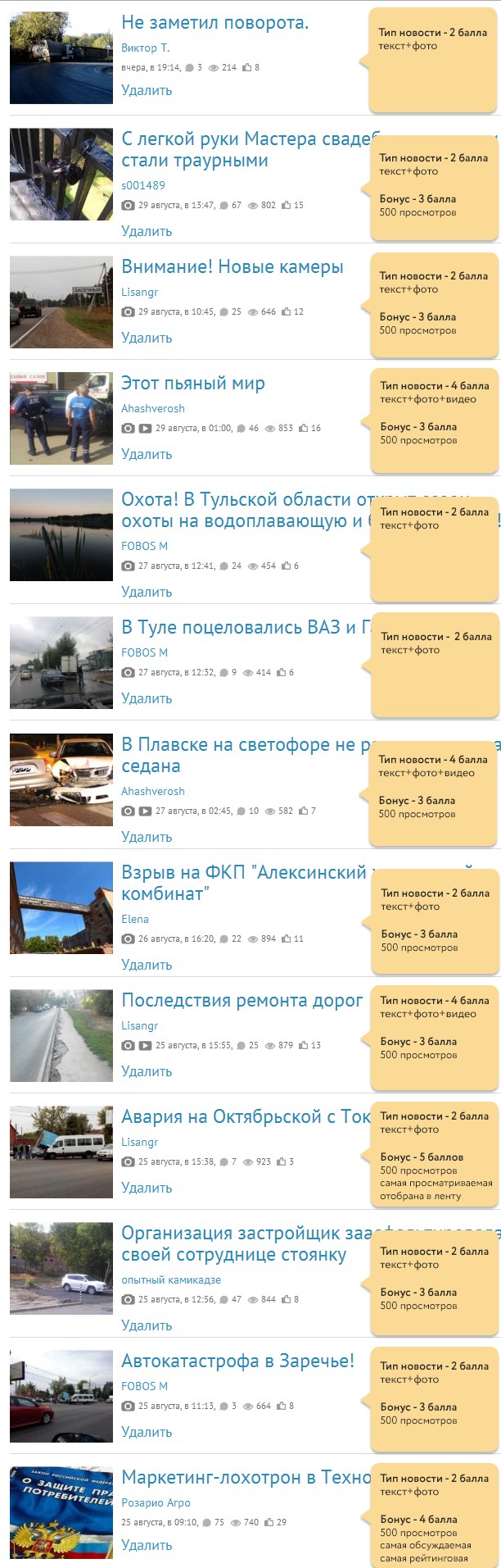 Баллы за новости, вышедшие на неделе: 25 августа - 31 августа