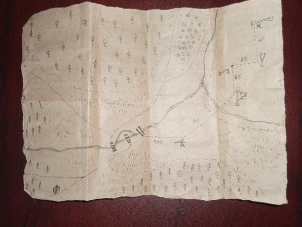 В начале января 2013 года Серёжа предложил мне съездить в Ясную Поляну. С самого утра и до вечера мы провели этот день вместе. Во время прогулки пришли к одной старой лавочке. Серёжа её застелил, достал термос с горячим чаем и конфеты. Я не подозревала, что это сюрприз. Возле лавки в снегу лежала бутылка из-под вина, немного усыпанная снегом, а в ней ещё что-то... Серёжа поднял и достал из неё кусок старой бумаги... Это была карта!