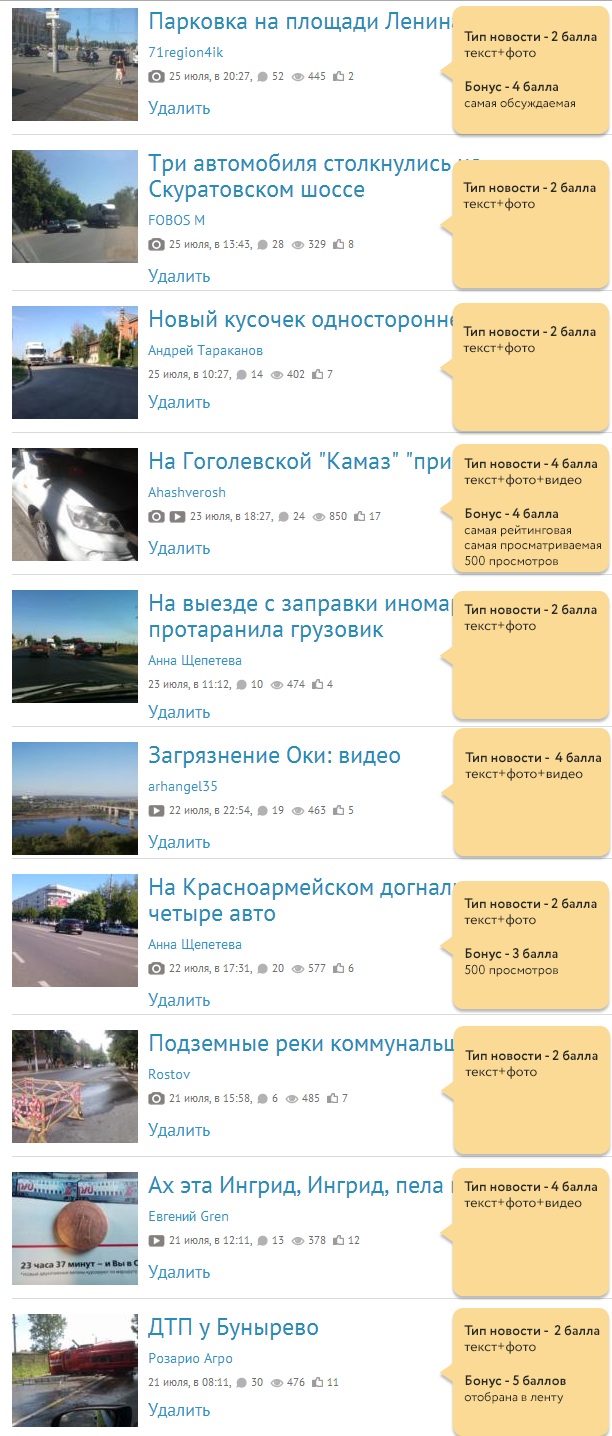 Баллы за новости, вышедшие на неделе: 21 июля - 27 июля