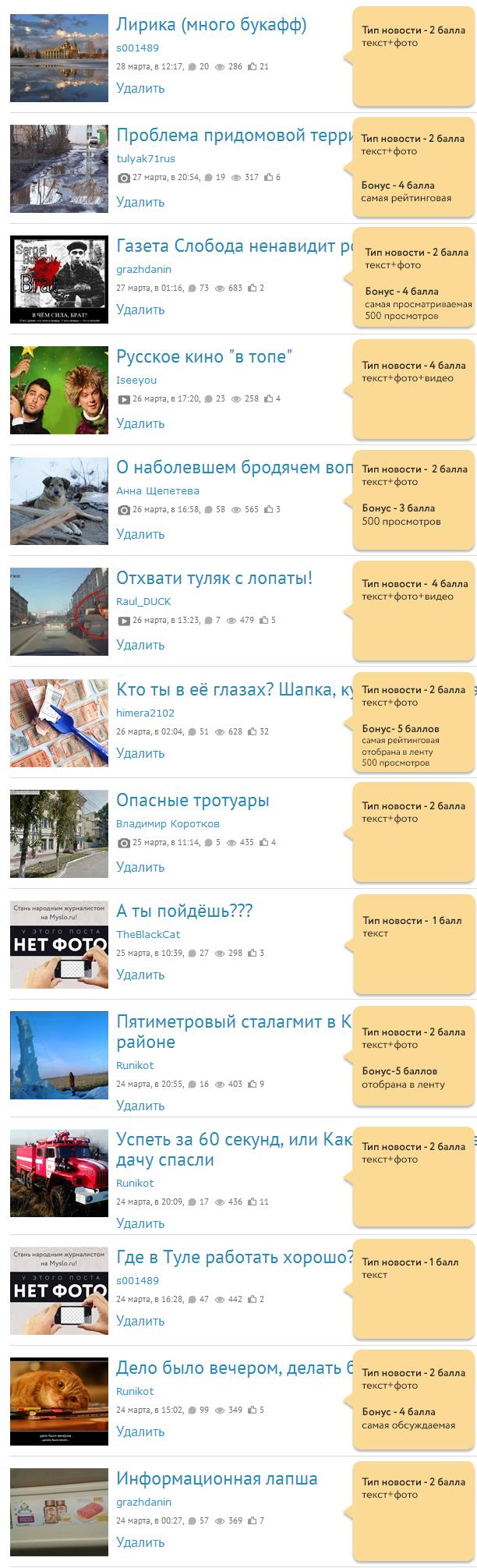 Баллы за новости, вышедшие на неделе: 3-9 марта