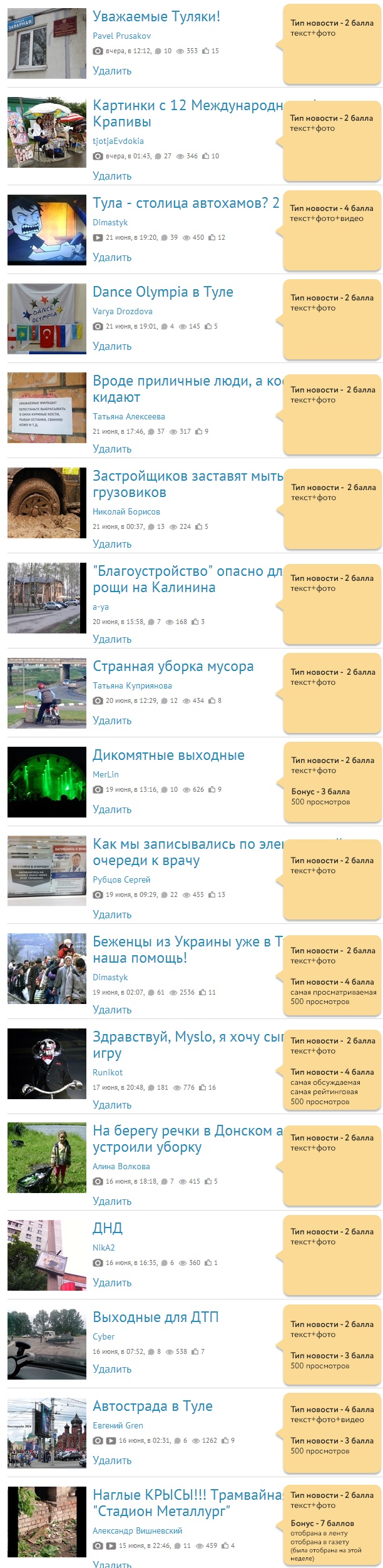 Баллы за новости, вышедшие на неделе: 16 июня - 22 июня