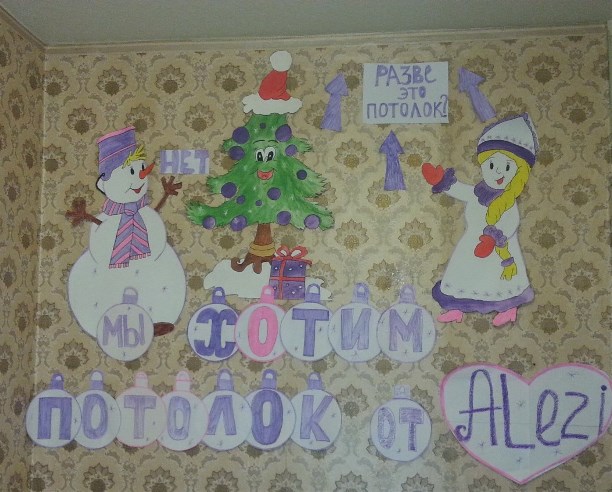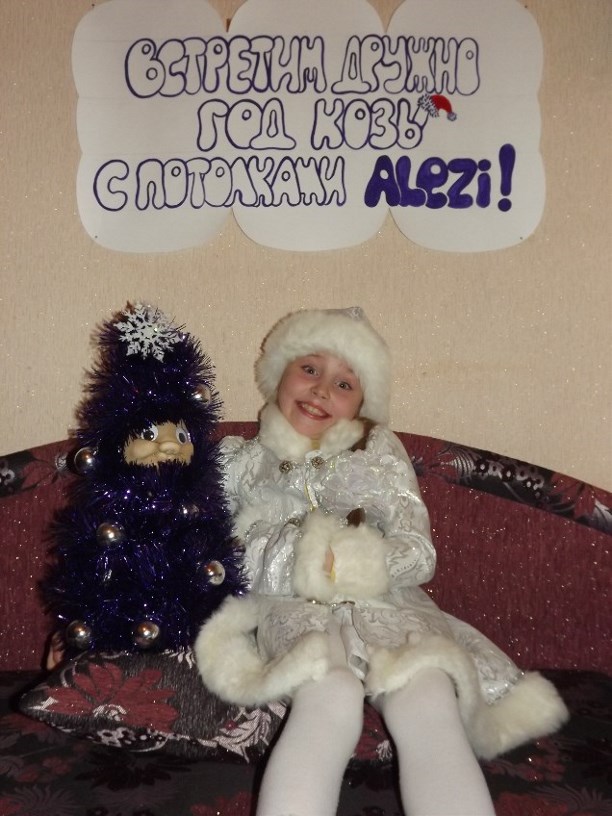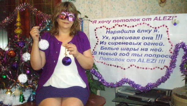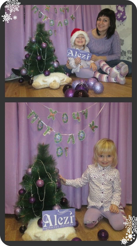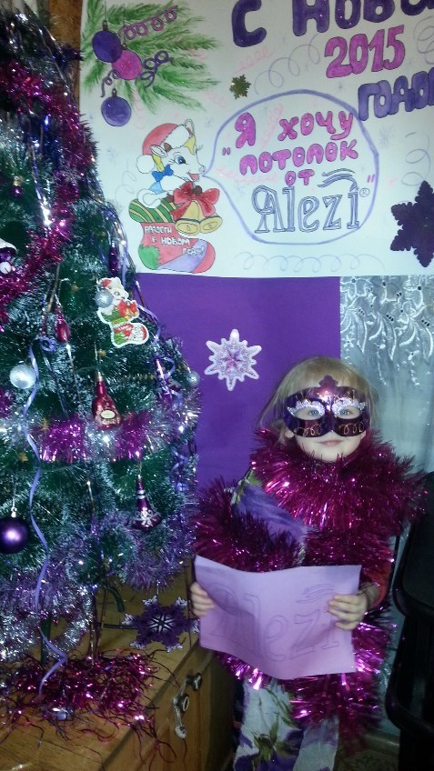 Весь декабрь участники соревновались и выкладывали свои фотографии рядом с красивыми ёлками, наряженными в фирменных цветах Alezi – сиреневом и белом и необычными плакатами, гирляндами и коллажами, на которых было написано, как сильно они хотят победить в конкурсе и получить суперприз – БЕСПЛАТНЫЙ НАТЯЖНОЙ ПОТОЛОК от Alezi в любую свою комнату.