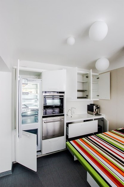 Кухню не только оснастили по последнему слову техники, но и установили все приборы таким образом, чтобы они были под рукой.