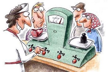 №10 «Хай-тек». Некоторые умельцы научились обманывать и электронные весы, заранее их "заряжая". Не вдаваясь в подробности (дабы не вводить в искушение непосвященных работников прилавка), расскажем лишь о том, как определить, что весы "заряжены": до взвешивания в окошечке, под которым написано "вес", должны быть высвечены четыре нуля, а не один (на некоторых моделях». Электронные весы «перепрошиваются» таким образом, что, допустим, до 500 грамм/рублей –вас не обвесят/не обсчитают. Но уже при большой покупке –вы не заметите, как вам в нагрузку дали «воздуха» рублей на 50-150.