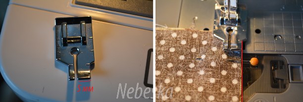 Идем на машинку. Тут немного остановлюсь и расскажу по поводу лапки. У меня она специальная для лоскутного шитья. Ширина края такой лапки 1\4 дюйма, а то расстояние, что я выделила, почти 5 мм ( там меньше, но для простоты жизни, представим, что там 5 и никогда об этом не будем забывать- прошивать детали нужно всегда с одним припуском, иначе изделие поедет!). Шить можно и обычной лапкой, достаточно найти ту ее ширину, по которой вы будете шить на протяжении всего(!) изделия.