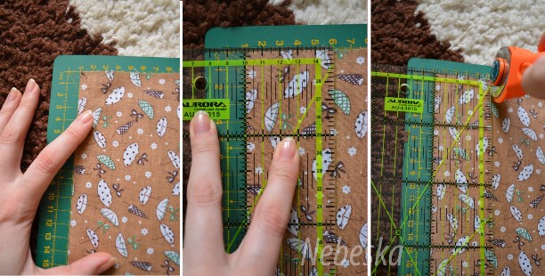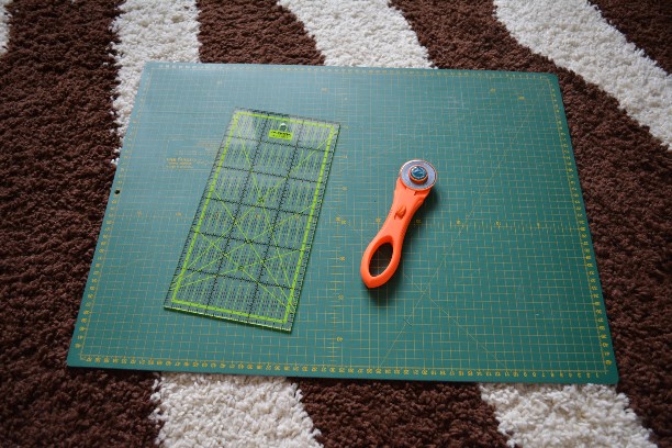 Если вы не ограничитесь разовыми творениями, лучше, конечно, приобрести инструменты для раскроя. Если же вариантов нет, линейку можно заменить любым чертежным треугольником или длинной и широкой жесткой прямой линейкой; нож-обычными ножницами (но тогда нужно будет чертить линии по которым вы будете резать: подойдет исчезающий маркер, который можно купить в любом швейном магазине; а коврик можно заменить миллиметровкой (для разметки) или вообще обойтись без него.