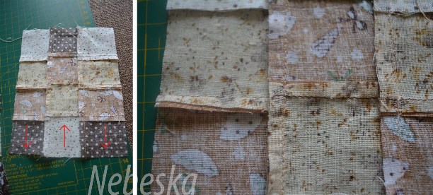 Повторяем шаг 2, 3, 4 для других двух полосок квадрата. У нас получилось 2 сшитых полотна, которые теперь мы сшиваем вместе используя 3, 4.