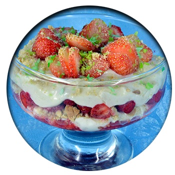 - Десерт уложить слоями: клубника, крем, раскрошенное печенье, крем, клубника.