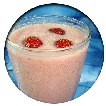 Клубника свежая - 200 г, творог обезжиренный 1 ст. ложка, йогурт натуральный - 200 мл, сахарная пудра по вкусу, ванильный сахар - 10 г, лёд колотый 2 ст. ложки по желанию.