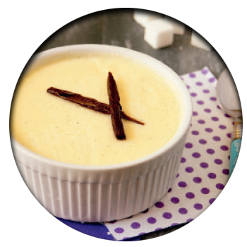 Молоко 1 л, стручок ванили, 3 желтка, 1 яйцо, сахар 200 г, крахмал 100 г.