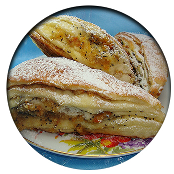 Для начинки - мёд, мак, курага,прокрученная через мясорубку (можно без неё).