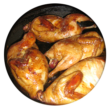 - Уложить в маринад перепелиные тушки, поставить сверху гнет. Оставить конструкцию на часок-другой.