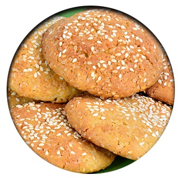 70 г муки, 60 г сливочного масла, 120 г сахара (можно коричневый), 1 яйцо, 10 г ванильного сахара, 1 ч. ложка свежевыжатого лимонного сока, 150 г семян кунжута, 0,5 ч. ложки разрыхлителя, 0,5 ч. ложки соли.